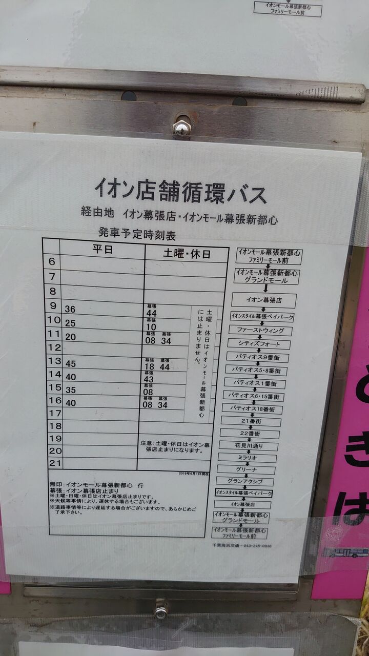 または若葉公園バス停よりイオン無料お買い物バス